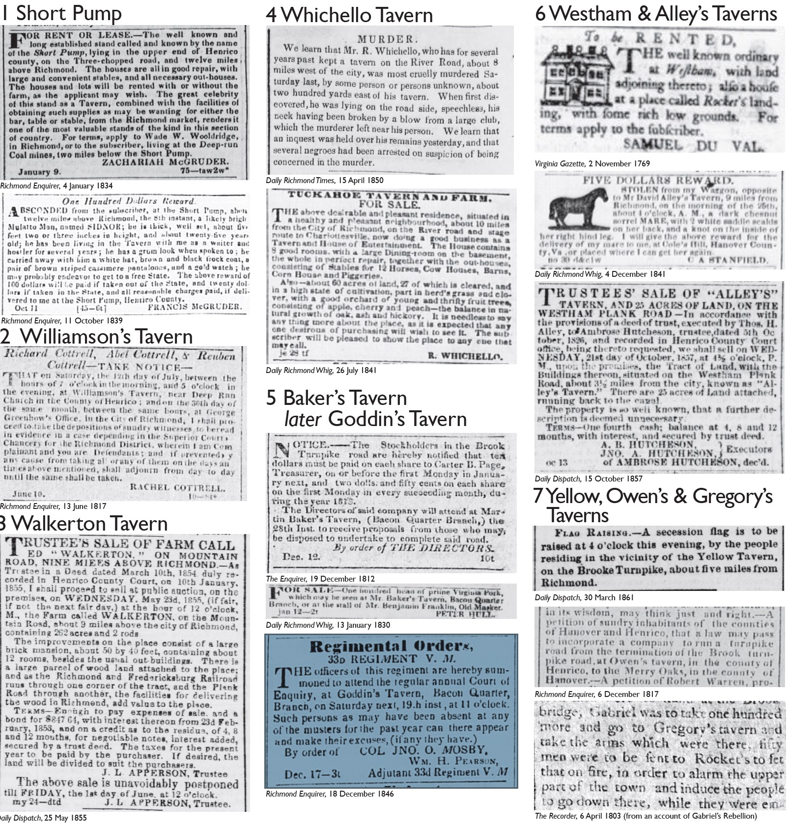 To view larger-sized image of these newspaper ads placed by upper Henrico Taverns in the 1800s, click this to view image.